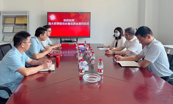 詳情>2025年5月7日上午,海南長(zhǎng)春花藥業(yè)有限公司總經(jīng)理王小力和海南大學(xué)藥學(xué)院羅院長(zhǎng)在長(zhǎng)春花藥業(yè)會(huì)議室正...